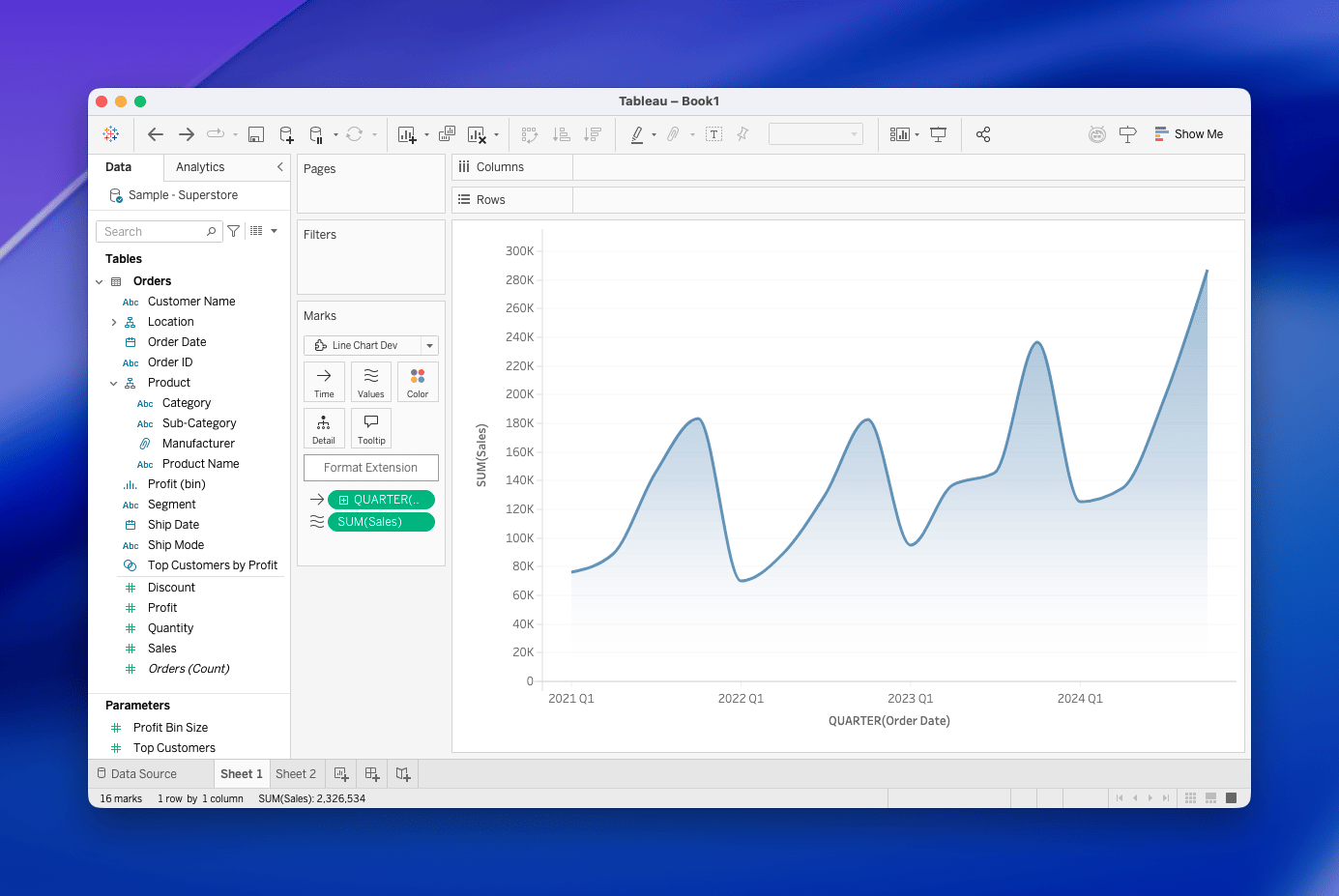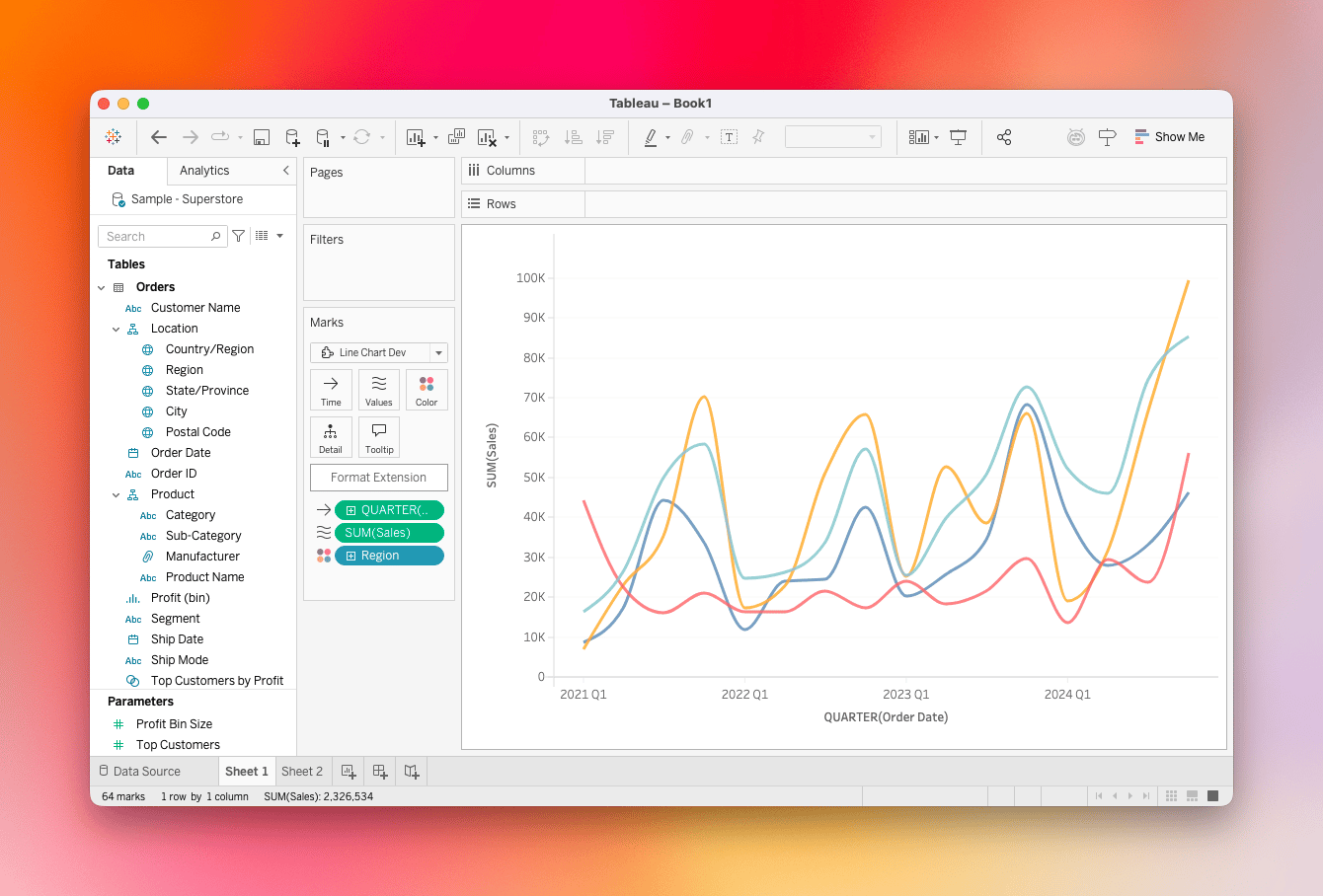 After building some extensions that create brand-new types of charts that couldn’t exist in Tableau, like the Globe path, we decided to improve a simple chart: Line.