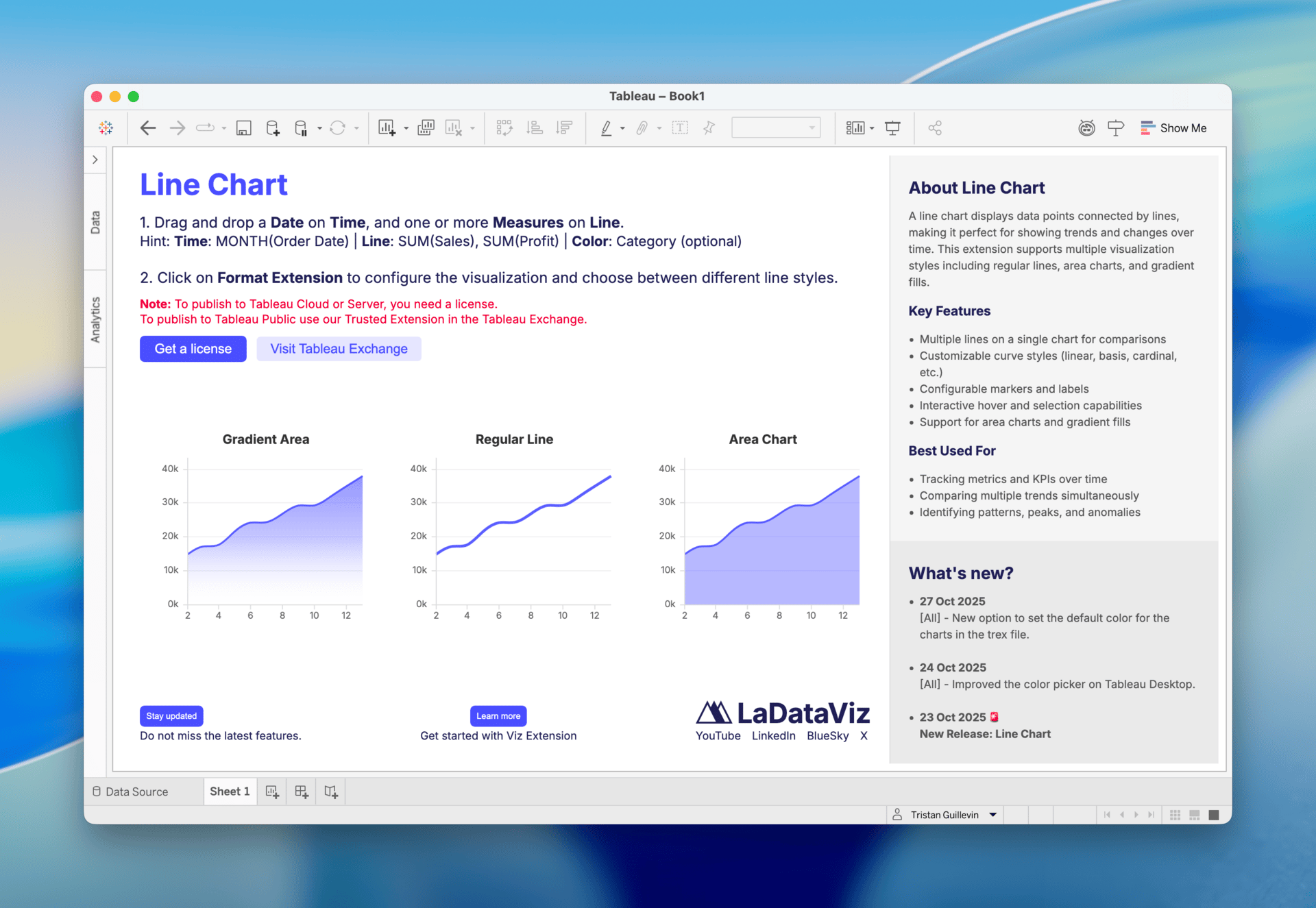 The new extension is Line Chart! It lets you use nice curves and gradients without any hacks or calculations to make your trends and evolution look modern!