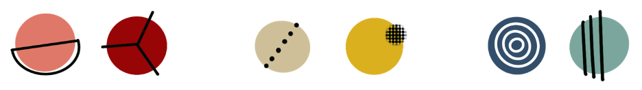 While searching for “minimalist circles,” we found this image that represented more or less the style we wanted: plain circles with an added feature that made them unique.