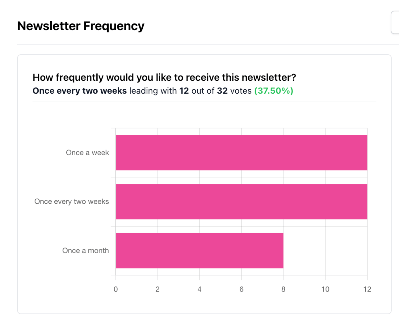 Speaking of writing, we asked you last week at what frequency you would prefer to receive this newsletter, and… it’s a tie!