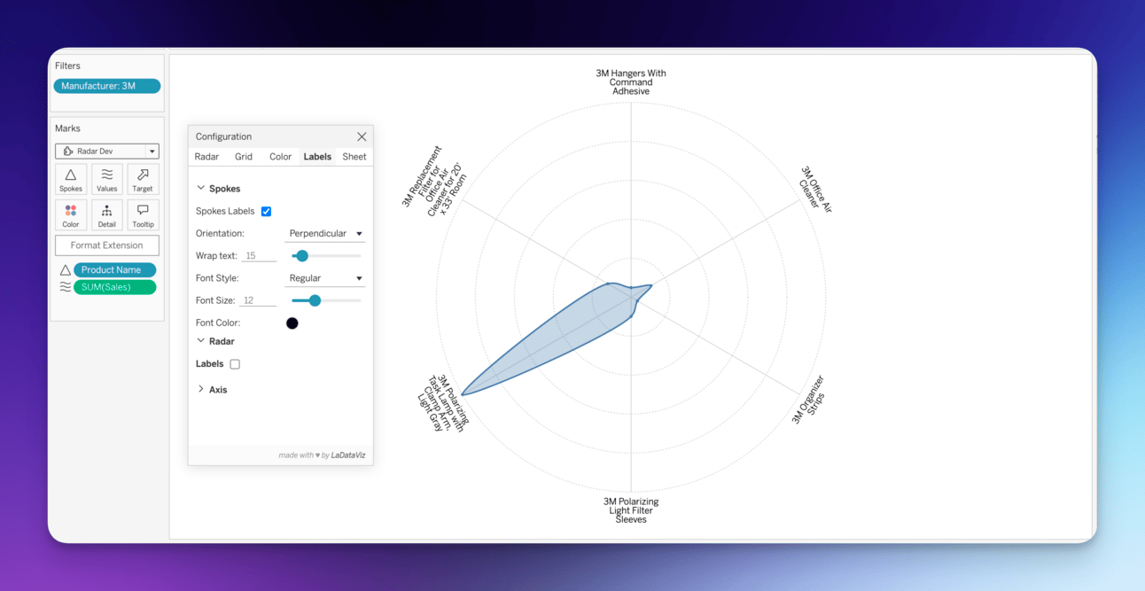 We also added the option to wrap the text of the spokes and display them perpendicularly or horizontally. Your long labels will no longer cause issues!